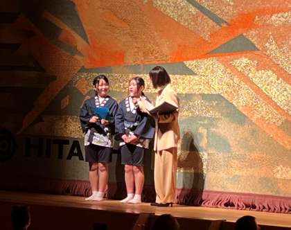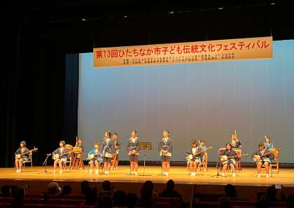 1/19日 伝統文化フェスティバルに出演しました 公開日 2025/01/20 更新日 2025/01/20 校内行事 ひたちなか市文化会館で開催された「市子ども伝統文化フェスティバル」に、今年度も伝統文化部の14名が出演しました。クラブ活動を中心に外部講師の先生からご指導をいただきながら練習に励んできました。12月からは昼休みを活用して取り組んできました。本番では、三味線や太鼓で演奏し、「網のし唄」を立派に披露することができました。保護者の皆様、ご参観ありがとうございました。