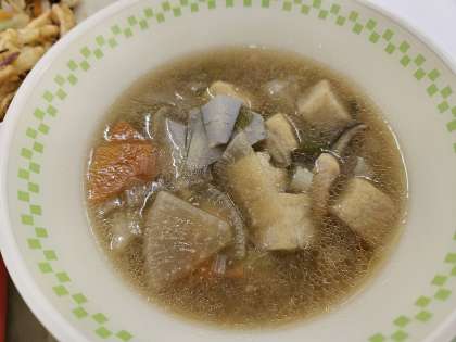 先日に引き続き、給食時間に長崎大学教育学部附属小学校の3・4年生の児童と本校の5年生が交流を行いました。今日は両方の学校の給食で茨城の郷土料理「のっぺい汁」が提供されました。のっぺい汁は、さといもや片栗粉のとろみが付いている汁物です。地元でとれた根菜がたっぷり入っています。長崎の子供たちにもおいしく食べてもらえたようです。緊張した様子でしたが、交流の最後には、お互い笑顔で手をふることができました。今週の金曜日には、長崎の「ぬっぺ」というのっぺい汁と似た料理をお互いの県の給食で提供します。