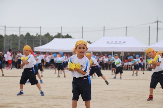 そして、1・2年生、3・4年生の可愛らしいダンス! 小さな体で一生懸命に踊る姿は、見ている私たちも笑顔にしてくれました。音楽に合わせて、楽しそうに体を動かす姿は、本当に愛らしかったです。