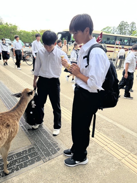 東大寺で大仏様にごあいさつした後は、奈良公園へ!