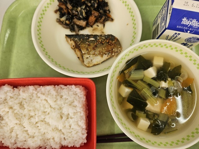 ごはん 牛乳 さばのカレー焼き ひじきの炒め煮 すまし汁