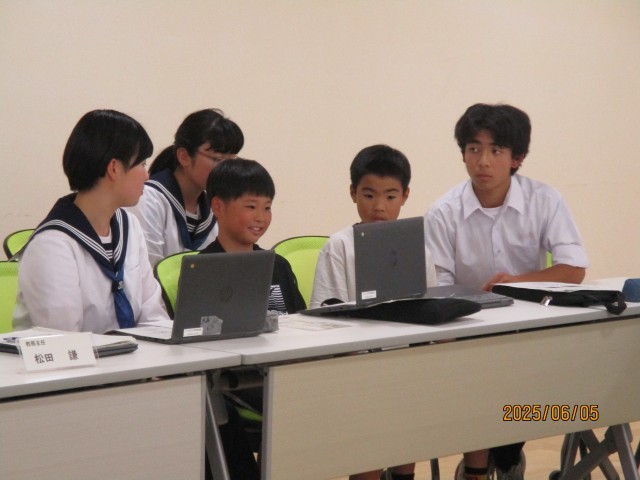 少し緊張していた様子の児童生徒たちも、「生活心得の変更点について」「もっと地域の人たちとあいさつを交わしたい」など、児童生徒会で取り組んでいることについて、しっかりと発信することができました。