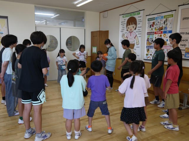 4年生は、ペアで協力する「ペアだるまさんが転んだ」や「進化じゃんけん」。