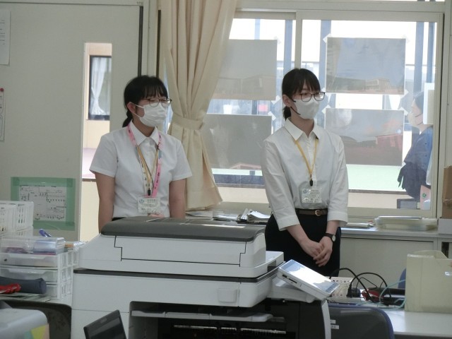 今日から金曜日まで、茨城キリスト教大学の3年生2名が現場の給食管理を学ぶ実習に来ています。1年生の学級に配属されていて、給食の時間や休み時間などに子供たちと関わってもらっています。5日間という短い期間で、現場に慣れることで必死だと思いますが、現場で少しでも多くのことを吸収できるように頑張ってほしいと思います。
