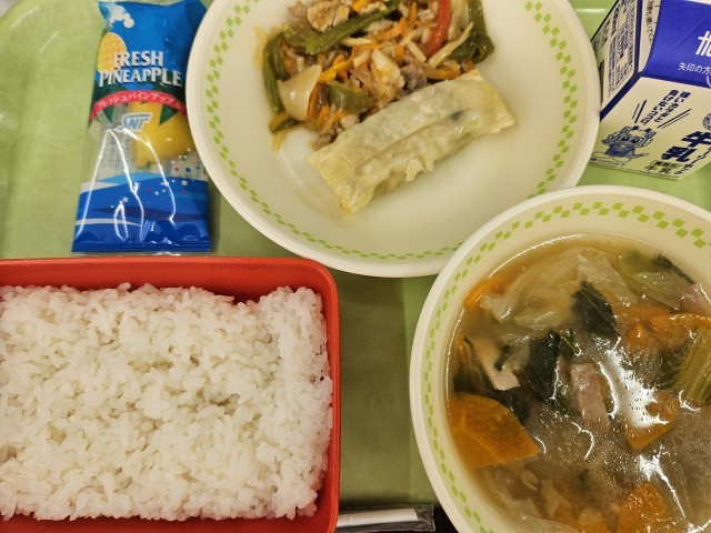 ごはん 牛乳 棒餃子 チンジャオロース 冬瓜スープ 冷凍パイン