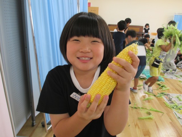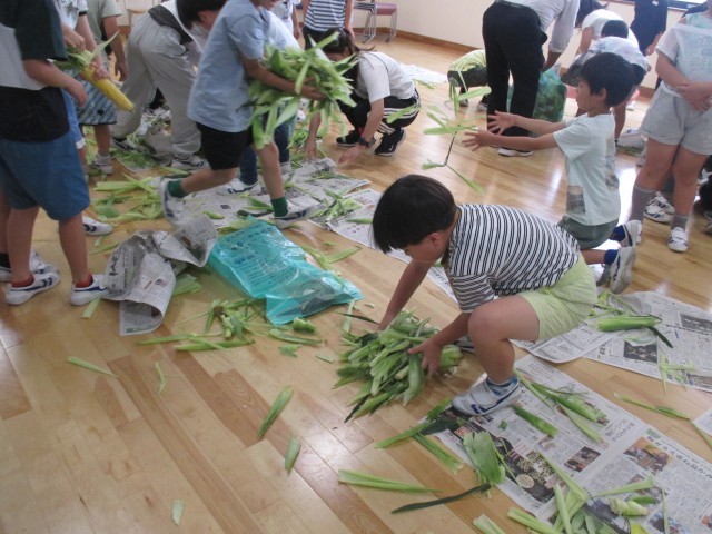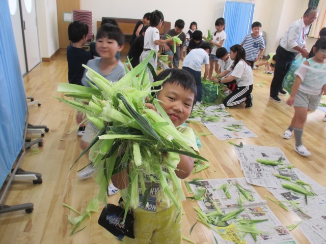 みんなで協力して皮をむいたとうもろこしは、きっと格別だったことでしょう。