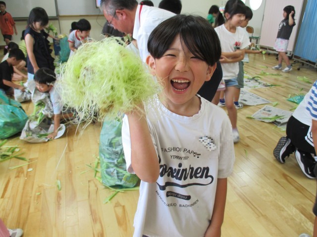それもそのはず、なんと全校生徒分のとうもろこしの皮むきを、2年生のみなさんが全部やってくれたのです!