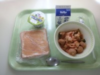 ★給食メニュー コッペパン チョコクリーム 牛乳 アスパラガスのシチュー オニオ...