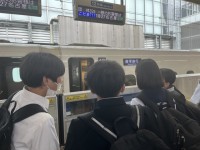 定刻通り、新幹線に乗車しました!車内では、またまたカードゲームを楽しむ生徒たち。...