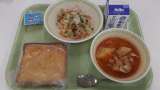 ★給食MENU ハニーレモントースト 牛乳 鶏肉と野菜のトマト煮 小松菜サラダ...