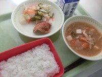 ★給食メニュー ごはん 牛乳 鶏肉の唐揚げ ごまあえ しめじのみそ汁 今日の給食...