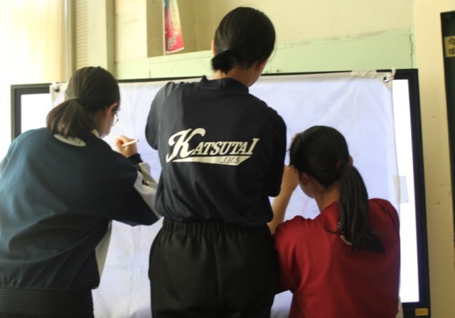 生徒たちの作成した学級旗は、11月の体育祭でお披露目されます。