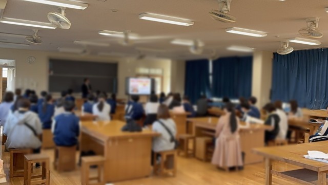 高校の先生の話に、真剣に耳を傾けていました。