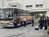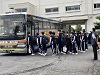 校長先生のかけ声で士気を高め、バスに乗り込みました。
