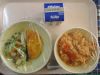 今日の給食は、チキンライス、牛乳、オムレツ、ツナサラダです。