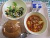 ポークビーンズは、それほど辛くなく、食べやすかったです。黒パンは、ほどよく甘く、ふわふわでした。小松菜サラダは、さっぱりと頂くことができます。