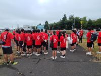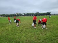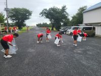 夏休みにも関わらず、早朝から生徒会役員10名、サッカー部14名が集合し、主催者が作成してくださった赤いTシャツを着て、薬莢を一つ一つ拾っていく作業を行いました。どの生徒も一生懸命に取り組み、地域の皆さんのお役に立つことができました。