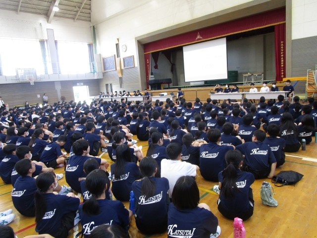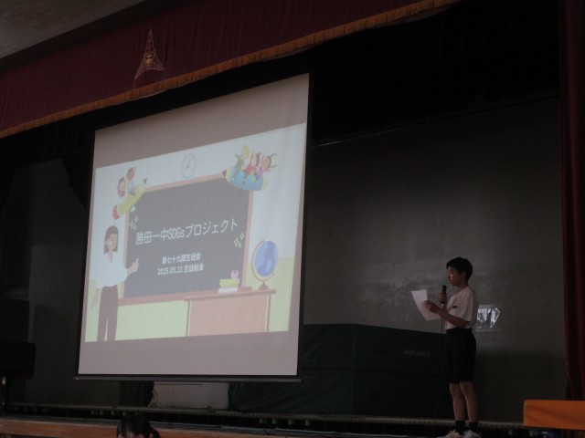 本日は、生徒総会が行われました。生徒会活動のスローガンは「変革 受け継いで超えていけ」に決まりました。予算や事業計画も無事承認されました。生徒会の皆さんの活躍を期待しています。最後に令和8年度からの新制服の披露がありました。制服が変わる歴史的な瞬間に生徒全員が立ち会い、大きな拍手のもと決定いたしました。