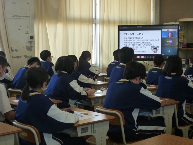 講師の先生からは、「ストレスの対処方法はたくさん持っているとよい」「誰かに話をすることもストレス対処方法のひとつ」といった助言がありました。今回の講演会では、困ったときに相談できそうな相手について考えました。多感な時期となり、さまざまな不安や悩みを抱えている人も多いと思います。時には信頼できる人を頼りながら、ストレスに対して適切な方法で対処する術を身に付け、自分を大切にして生活してほしいです。