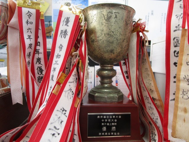 7月11日の陸上部県大会の結果報告がありました。男子リレーが関東大会、全国大会出場決定、男子200m、1年男子100mで関東大会出場が決まりました。男子団体においても総合優勝という結果でした。素晴らし結果に、職員室では大きな拍手が鳴り響きました。おめでとう。