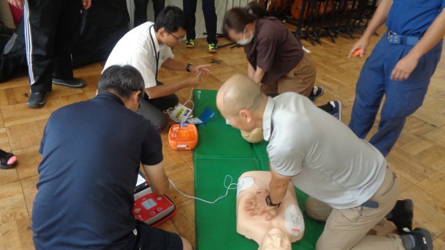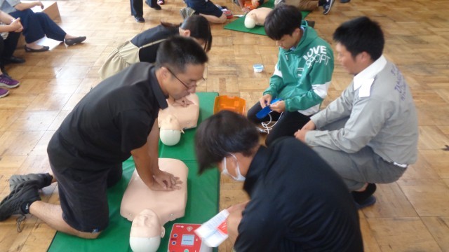 胸骨圧迫の仕方やAEDの使い方などについて実習しました。