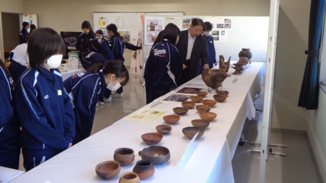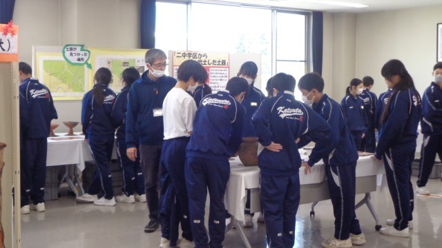 真剣に資料を読んだり、土器に触れたりしながら学習を深めていました。