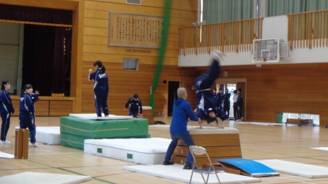 体育の授業では、器械運動に取り組んでいます。