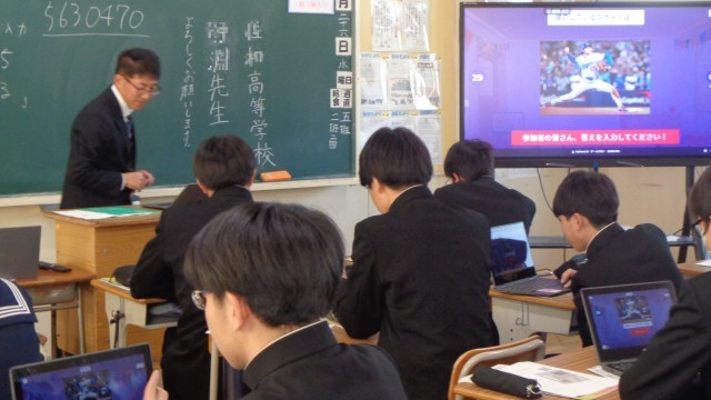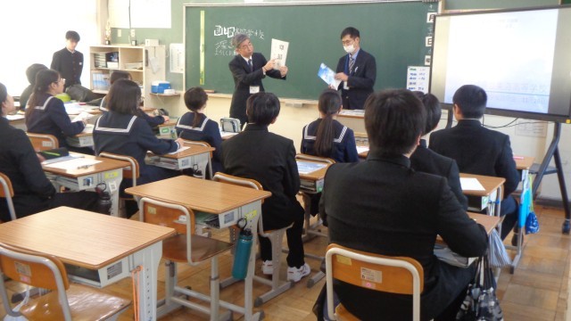 県立高等学校の先生方にお越しいただき、学校説明と模擬授業をしていただきました。
