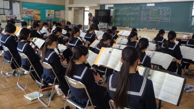 1年生の音楽の授業では、初めてのアルトリコーダーの運指に苦心しながらも、美しい音色を奏でようとがんばっていました。