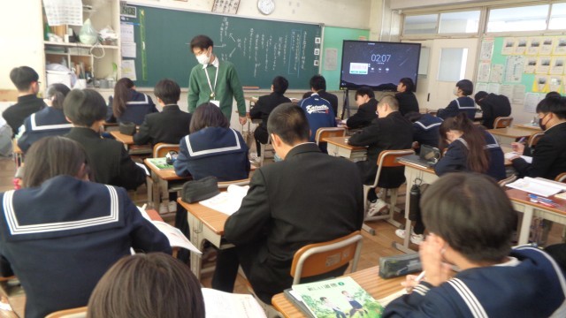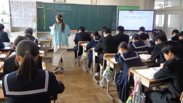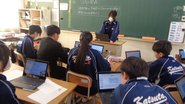 3年生の総合的な学習の授業では、持続可能なひたちなか市・茨城県をめざし、どんな取組をすればよいか調べ考えたことを発表していました。
