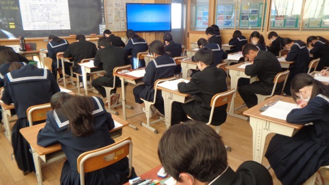 1・2年生は、学力診断のためのテストに取り組んでいます。