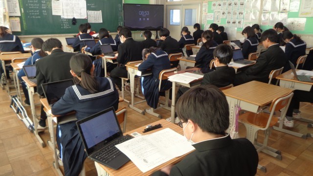 1・2年生は、技能教科(音楽、美術、保健体育、技術・家庭)の学年末テストを受けました。