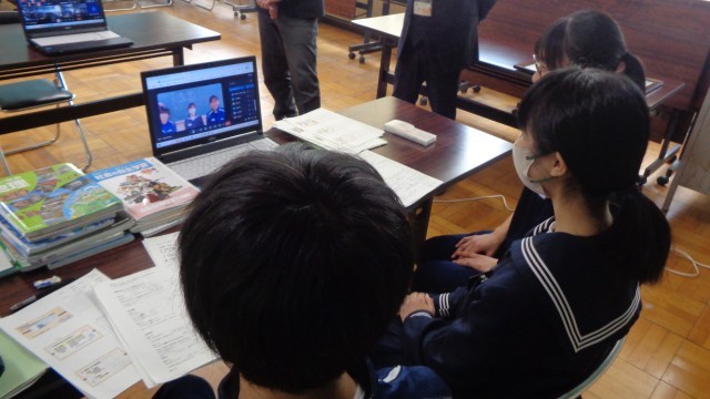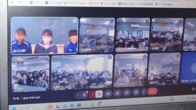 今日は、二中学区の小学校とオンラインで交流会を行いました。