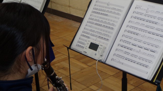 全員チューナーを使い、正しい音が出せているかを確認しながら基礎合奏をしています。
