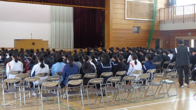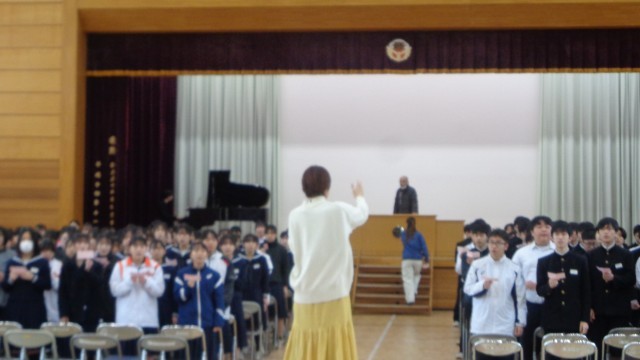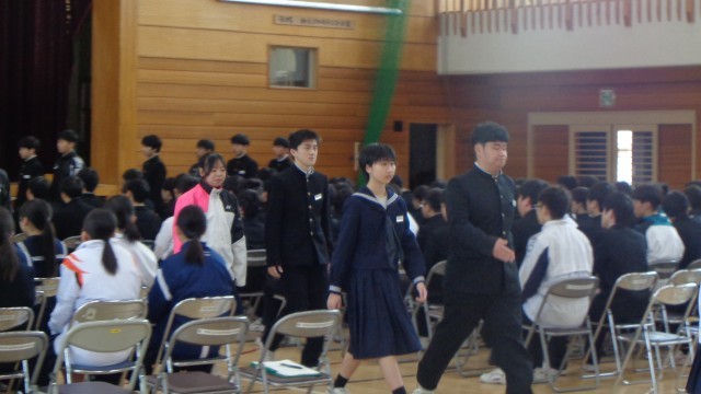 式の全体の流れを確認し、礼や入退場、詩の練習に励んでいました。