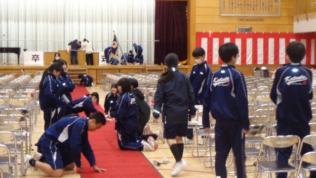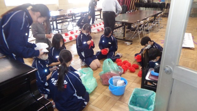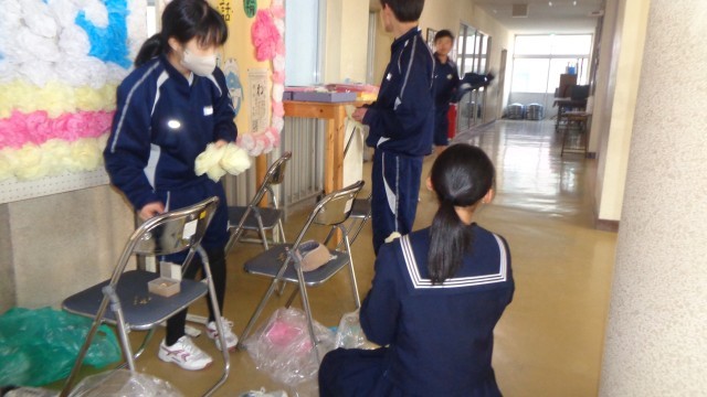 明日の卒業式に向けて、在校生の代表が準備をしてくれました。