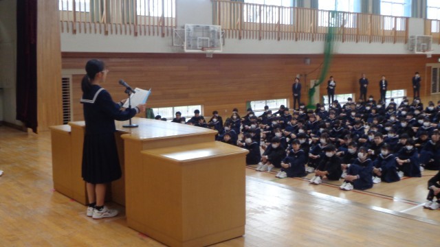 始業式では、各学年の代表生徒が今年度の抱負を発表しました。