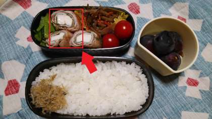 5 フライパンに油をしいて,巻いた端を下にして焼く。