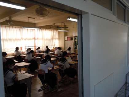 3年生と同じように1クラスを2つに分散してテストを実施しています。