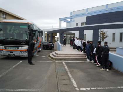中央地区駅伝競走大会に向けて選手が出発しました。感染予防のため活動停止期間があり,思うような練習はできませんでしたが,勝田二中の代表として頑張ってくれると思います。校長先生を始め多くの先生方に見送られて出発しました。