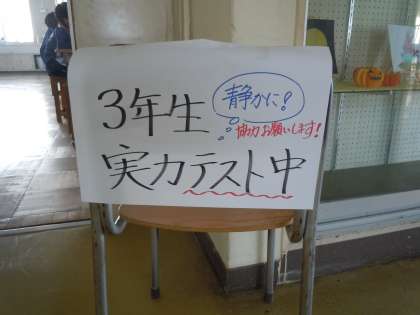3年生が実力テストを実施しています。週末から修学旅行,11月に入ると中間テスト,県立高校説明会,三者面談に合唱祭と学校行事と進路関係の行事が続きます。忙しい時期だからこそ,しっかりと目標と見通しを持って乗り越えて欲しいと思います。