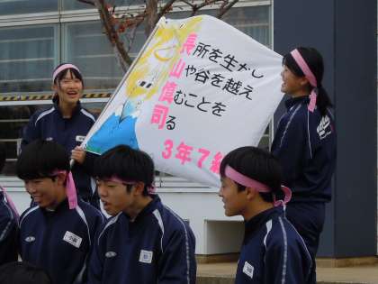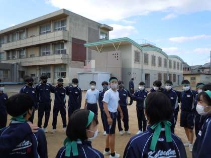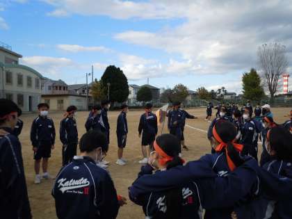 体育祭代替行事として3年生がクラスマッチを行っています。種目は全員リレーと大縄跳びです。予定されていた体育祭から2ヶ月がたちましたが,3年生の元気な声がグランドに響きわたっています。
