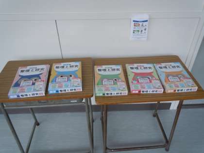 2号館1階の2年生昇降口付近に,受験用テキストを展示しています。まだまだと思っていても,2年生もそろそろ3年生に向けての準備が始まっています。