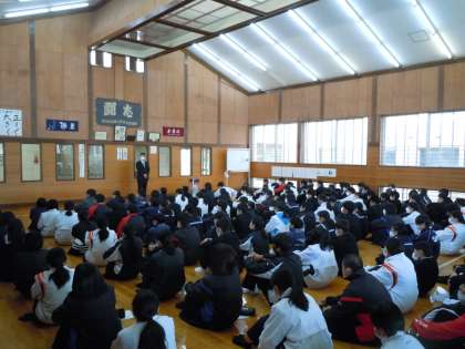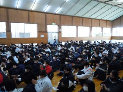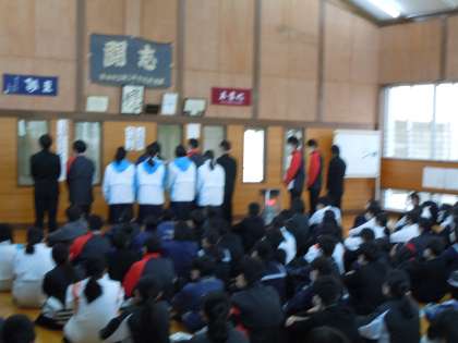 3校時に、2年生が学年集会を行いました。好結果を残した新人戦の表彰などを行いましたが、たいへん落ち着いた雰囲気で行われました。