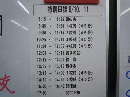 連休が終わりました。連休中行われた部活動の大会で好結果を残した部活動もあります。また、明日、明後日は出張者が多数のため、日課を変更いたしましたのでご協力をお願いします。
