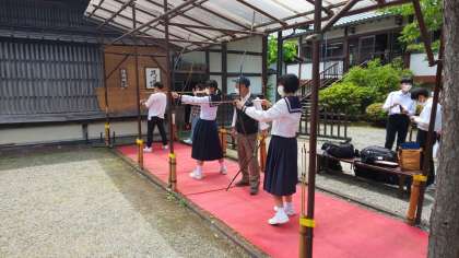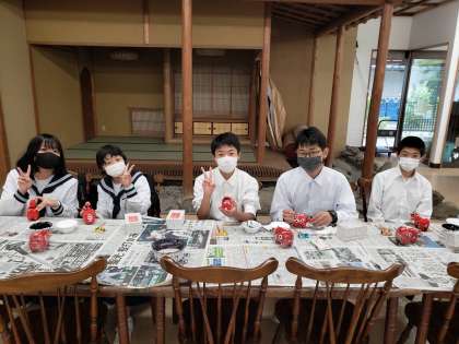 会津市内の班別活動では、弓道をしたり、赤べこづくりをしたり、さまざまな活動に取り組んでいます。天候もよく。楽しく活動しています。