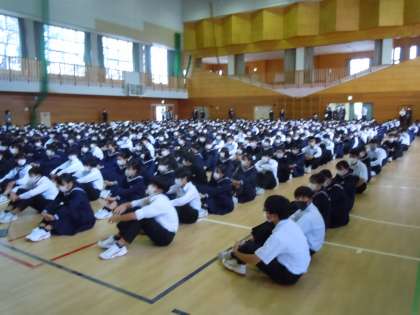 体育館に全校生徒を集めて前期終業式を行いました。また終業式の前に表彰も行いました。コロナ禍の中、全校生徒が集まる機会が少なくなりましたが、今日の集会は厳粛な中で行うことができました。