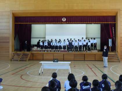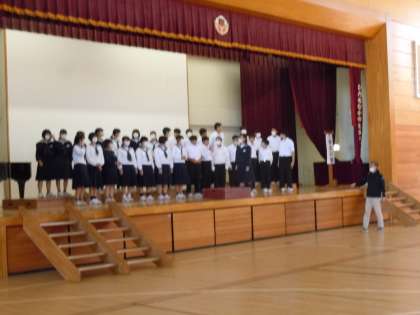 3年生、1年生に続いて2年生がリハーサルを行いました。2年生は他の学年に比べて男女の人数比がほぼ同じということもあり、バランスの良い合唱を聞かせてくれています。本番も自信をもって発表してください。