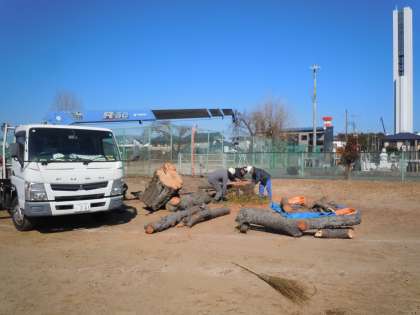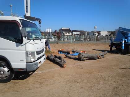 グラウンドの樹木を1本伐採していただきました。桜の木が少なくなっていくのはさみしいですが、樹木の老朽化が進み、危険性を考えて毎年数本ずつ伐採しています。