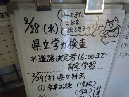 いよいよ本番です。悪天候でなくて良かったです。学校では、3年生の先生方が明日からの準備を進めています。